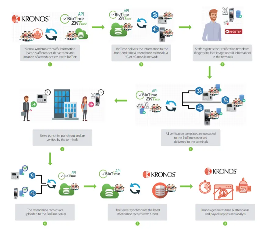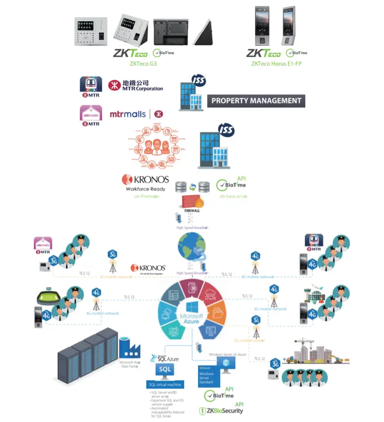 ZKTeco BioTime Time & Attendance Platform — это программное обеспечение с широкими возможностями настройки, которое мы интегрировали с системой Kronos через отображение базы данных. Отныне система дает возможность автоматически управлять фондом заработной платы, что экономит трудовой ресурс и повышает эффективность работы. Платформа BioTime также установлена в облачной платформе Microsoft AZURE для повышения гибкого обновления серверов и управления ресурсами.
