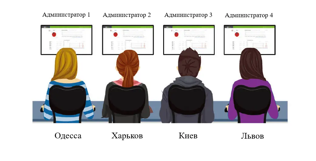 Несколько администраторов могут быть установлены для управления различными модулями в программном обеспечении. Например, один администратор получит права для построения отчетов посещаемости сотрудников, включая количество опозданий и отсутствий. А другой, получит права для управления и редактирования смен и расписаний сотрудников.