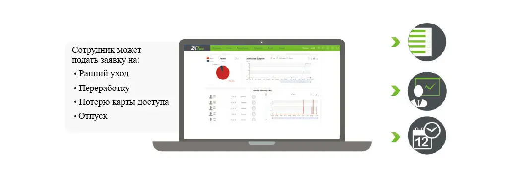 BioTime - это мощное веб-серверное программное обеспечение, которое предлагает самые инновационные функции для учета рабочего времени. ПО обеспечивает стабильную связь с устройствами через LAN / WAN / Wi-Fi / GPRS / 3G. Пользователи могут получить доступ к программному обеспечению в любом месте через свой веб-браузер, чтобы удаленно управлять тысячами терминалов учета рабочего времени в сложной сети (WLAN). Программное обеспечение имеет базовый модуль контроля доступа, с помощью которого можно управлять автономными терминалами контроля доступа ZKTeco. Еще одной замечательной функцией является модуль расчета заработной платы, который считает зарплату сотрудников в соответствии с их рабочими нагрузками и может легко создавать отчеты WPS. Функция автоматической синхронизации доступна для обмена данными между устройствами и сервером в одной и той же «области» (группирование устройств для удобства использования). Благодаря новому удобному пользовательскому интерфейсу - управление расписанием, сменами и отчетами о посещаемости стало легче и удобней.