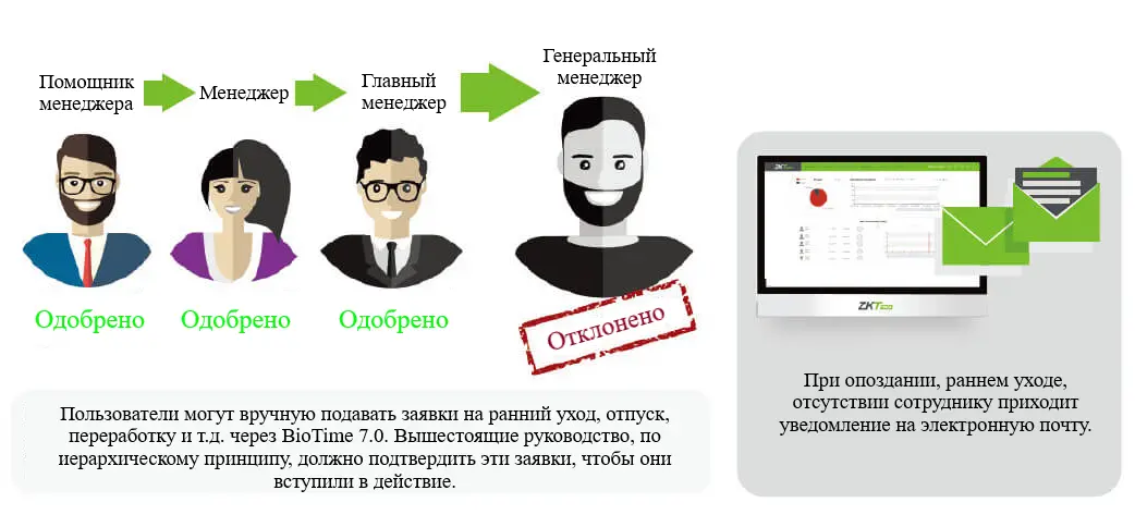Многоуровневое подтверждение и автоматическое оповещение по электронной почте.