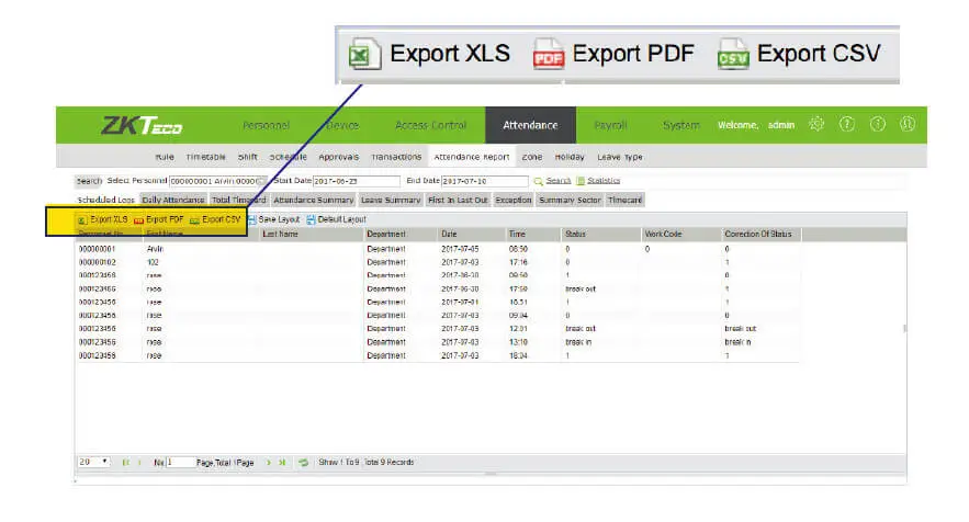 Отчеты посещаемости и отработанное рабочее время легко подсчитываются программой и могут быть экспортированы в CSV, PDF и XLS форматы.