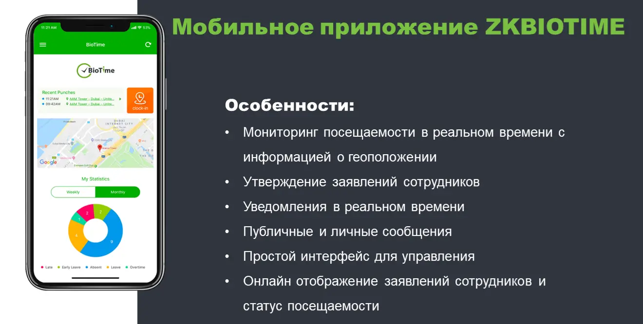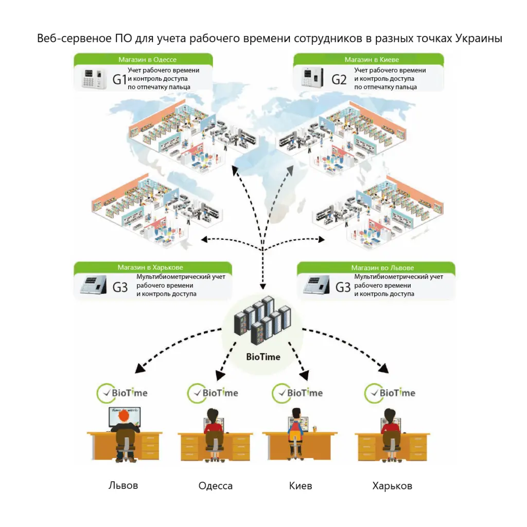 час. Усі дані в режимі реального часу надсилаються до програмного забезпечення BioTime, де вони базуються
