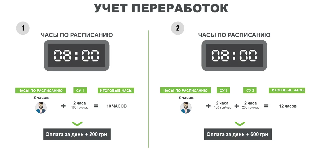 BioTime враховує понаднормові години за кількома погодинними ставками оплати