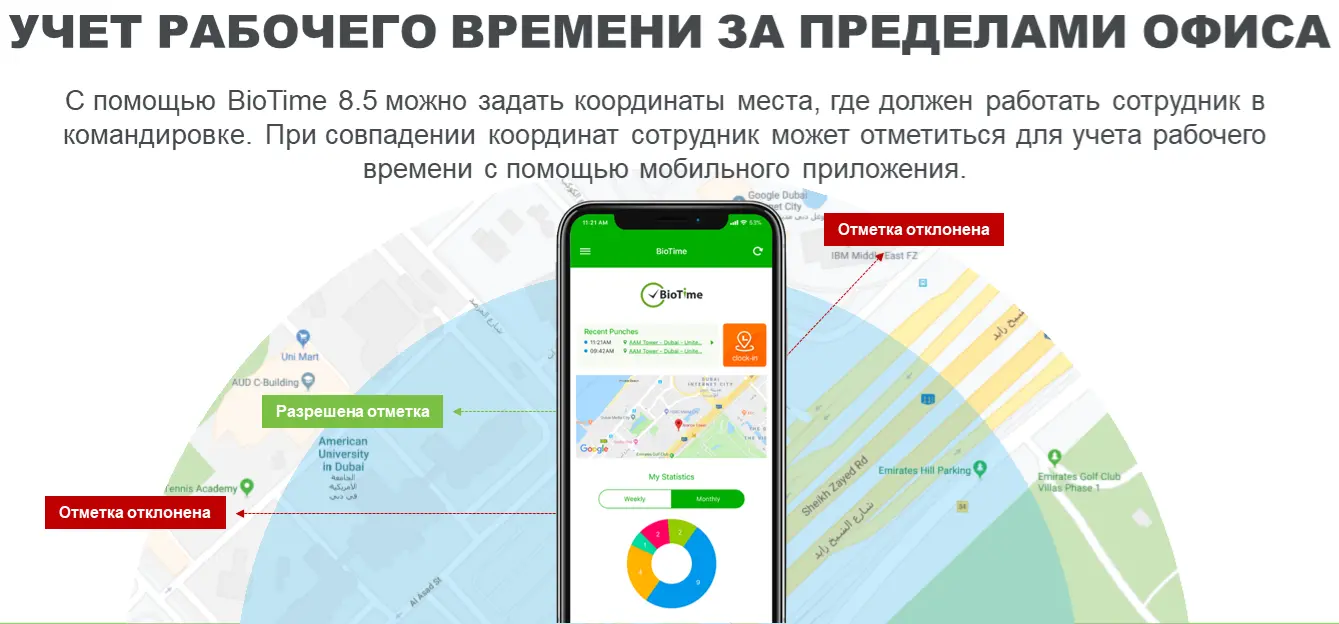 BioTime 8.5 точні координати місця (довготи та широти), де повинен працювати працівник, а також