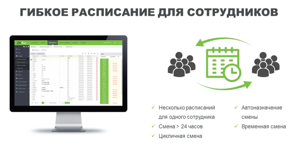 співробітники, реєструють запізнення, ранні від'їзди, призначають кілька змін на службовців. Такі