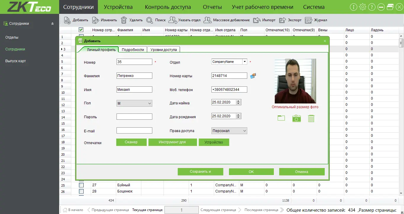 Мешканці будинку, які орендують паркувальні місця або ж викупили їх, додаються в систему за допомогою ноутбука, що стоїть в будиночку охоронця. Мешканцеві потрібно купити UHF-мітку. Номер мітки за допомогою USB-зчитувача вноситься в ПО ZKAccess 3.5, де так само вказується вся інформація про мешканця (номер телефону, прізвище, ім'я, номер квартири і т.д.)
