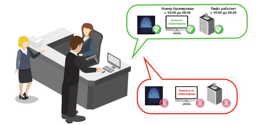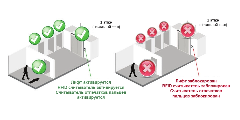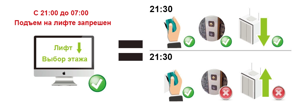 Відбитки вен, Малюнки Долонь і Геометрія Обличчя span> p> - Багатофункціональний модуль для управління відвідувачами span> p> - Заборона повторного проходу та Глобальний шлюз span> p> Управління ліфтом Рівні доступу, призначені користувачам Span> b> p> Модуль управління ліфтом від ZKTeco дозволяє користувачам отримувати доступ до обраного поверху, якщо користувач пройшов перевірку і його рівень доступу дозволяє піднятися на цей поверх, в іншому випадку доступ буде заборонений. Користувач повинен прикласти свою RFID карту / Відбиток пальця до зчитувача в ліфті, після успішної ідентифікації буде відкритий доступ до дозволених для нього поверхах. Це дозволяє підвищити рівень безпеки управління доступом до ліфта в усьому будинку з використанням контрольної панелі встановленої на кожному ліфті Обмеження роботи ліфта в часовому інтервалі ZKTeco Elevator Control може обмежувати роботу ліфтів в певний час. Якщо використання ліфта для підняття на поверх було заборонено з 9:00 вечора до 7:00 ранку, то о 9:30 вечора ви зможете опуститися за допомогою ліфта, а піднятися -ні. Глобальний Шлюз Глобальний шлюз - це ще одна функція ZKBiosecurity, яка підвіщує рівень безпеки Шляхом роботи з різніміими областями контролю доступу. Функція шлюз НЕ дозволяє корістувачеві Відкривати більш одних дверей одночасно, навіть якщо у них є право доступу до декількох дверей. Ві такоже можете дозволяті доступ до конкретних дверей, тільки тоді, коли інші двері замкнені. Реєстрація користувачів Після реєстрації користувача йому надаються права доступу для використання ліфта в певний період часу із зазначенням поверхів на які можна піднятися. Span> p> Наприклад, щоб забронювати на певний час кімнату для тренінгу, а також скоритстисята ліфтом, користувач вибирає відповідну дату і час через веб-платформу ZKBioSecurity і після сканування відбитку пальця отримує підтвердження доступу. Біометрична процедура гарантує, що людина уповноважений і має право на бронювання кімнати і робочий час ліфта. Онлайн/Офлайн Режим Работи Управління ліфтом ZKTeco може працювати в онлайн режимі або автономно. Режим Онлайн: потрібно TCP / IP з'єднання і доступ до Інтернету. Усі транзакції через ліфт зберігаються локально в контролері ліфта і автоматично завантажуються на сервер. Користувач може дистанційно керувати ліфтом, додавати користувачів і т.д. Span> p> Автономний режим: дані можуть бути отримані безпосередньо з контролера. Користувач не може дистанційно керувати контролером. Один дотик для доступу до усіх областей Глобальні Зв'язки ZKBioSecurity надає функцію "Глобальні Зв'язки" для користувачів. Програма дозволяє автоматизувати системні функції і відправляти повідомлення по всій системі. Існує кілька рівнів процесу оповіщення включаючи активацію релейних виходів, спливаючі відео в режимі моніторингу в реальному часі, повідомлення по електронній пошті, голосові підказки і т.д. Точка Виходу Глобальні точки Входу / Виходу дозволяють адміністраторам налаштовувати зв'язку, де виникають події можуть активувати будь-які інші події в системі. Ці зв'язки можуть бути активовані різними подіями з різним рівнем доступу: незареєстрована безконтактна карта доступу, незареєстрований відбиток пальця або виявлення руху IP-камерою, можуть активувати такі події, як спрацьовування релейних виходів, запис події IP-камерою іт. д. Взаємодія з си