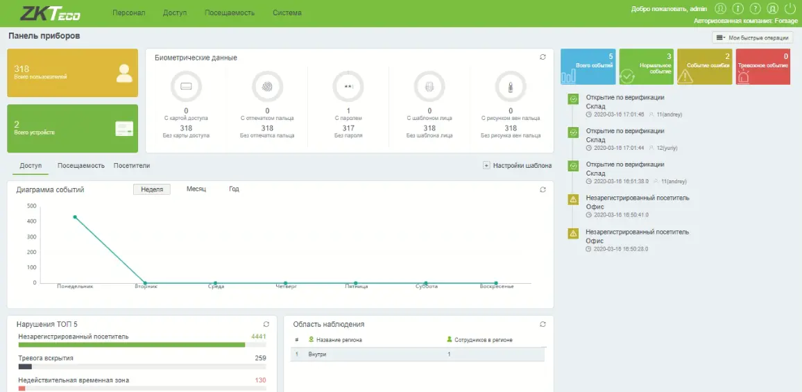 Horus работает с программным обеспечением BioTime 8.5 и ZKBioSecurity.