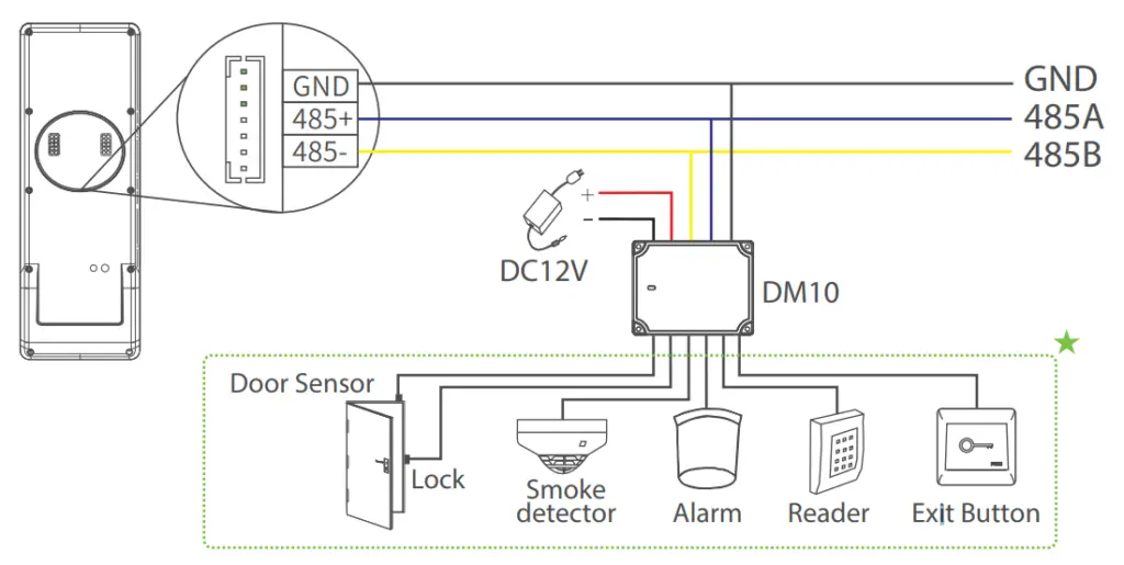 Модели опционально поддерживают модуль контроля доступа DM10. Терминалы подключатся к модулю через интерфейс RS485.